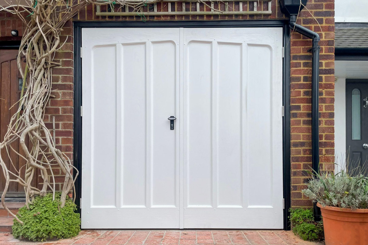 - Starting at £900 for a single, standard sized steel non-insulated side hinged garage door in white.